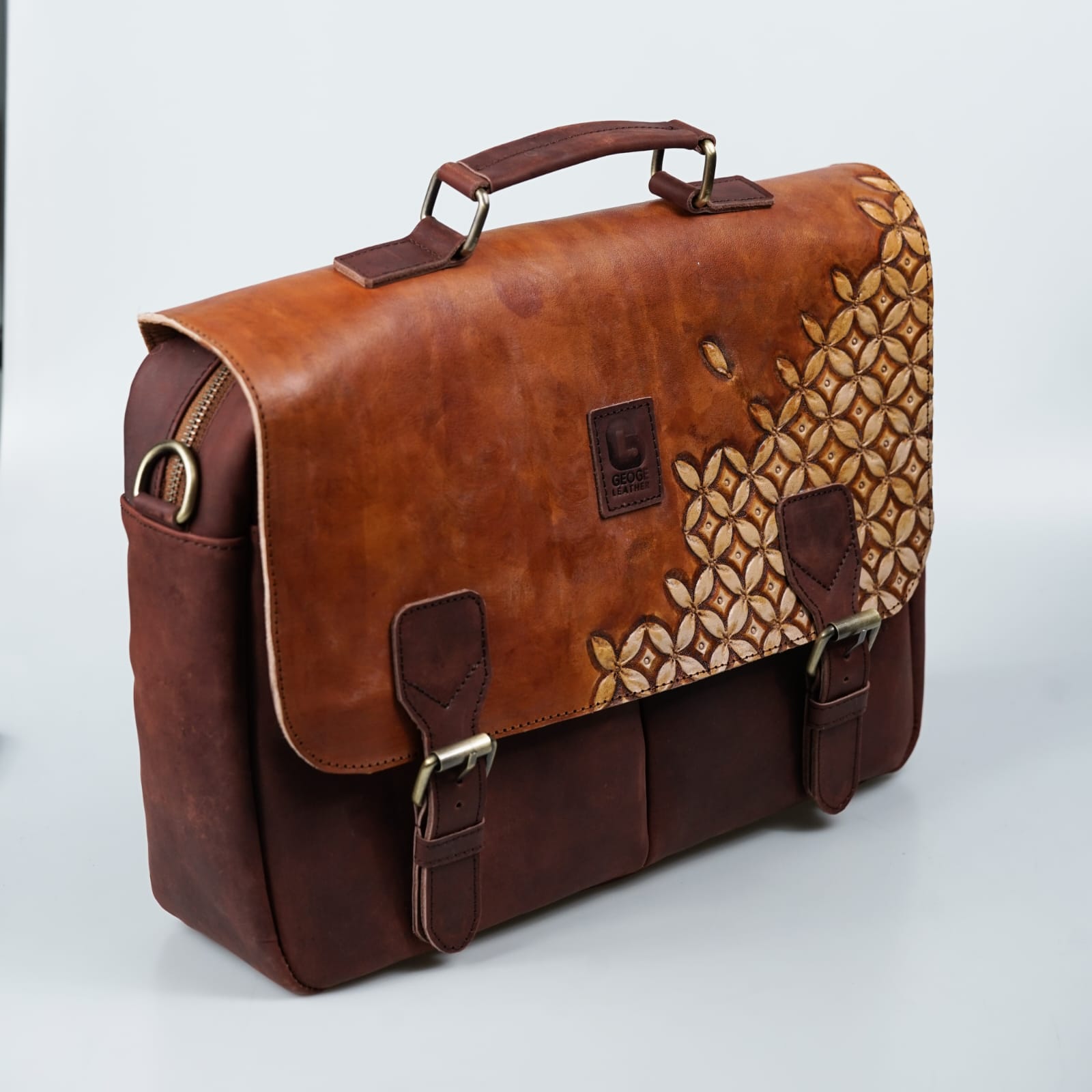 Geoge Leather is a leather craft brand established in 2018, specializing in handcrafted leather goods featuring embossed carving techniques inspired by Nusantara artistry. Our collections include cowhide leather bags, wallets, belts, and various other leather accessories. We work with selected cowhide types such as box, pull-up, and crazy horse leather, each chosen for its distinctive texture and character.